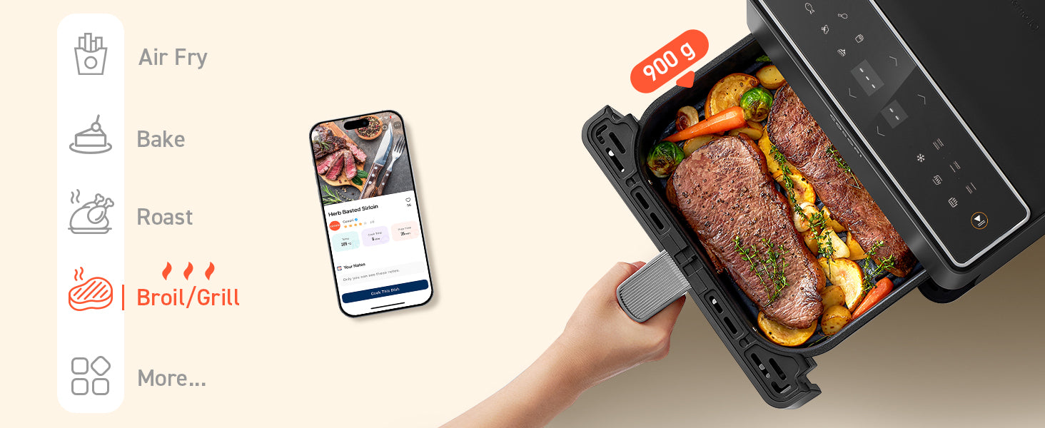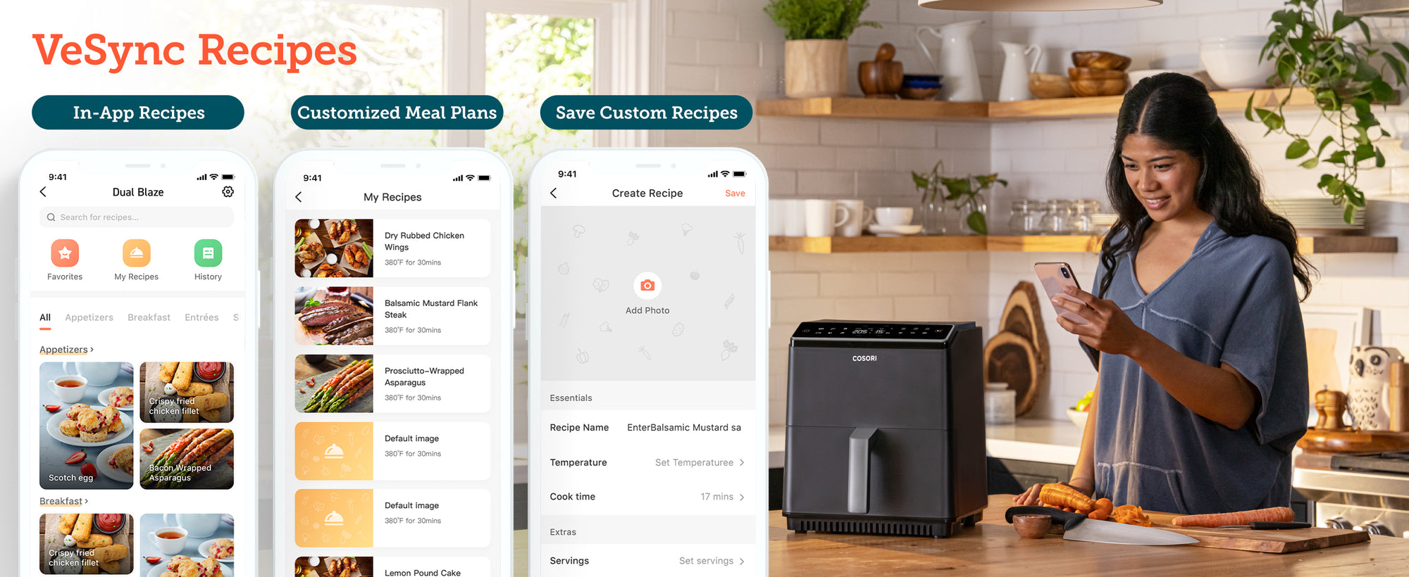 - Scan-to-Cook: Scan your favorite packaged food with our free VeSync app and instantly view complete nutrition facts and step-by-step air frying instructions