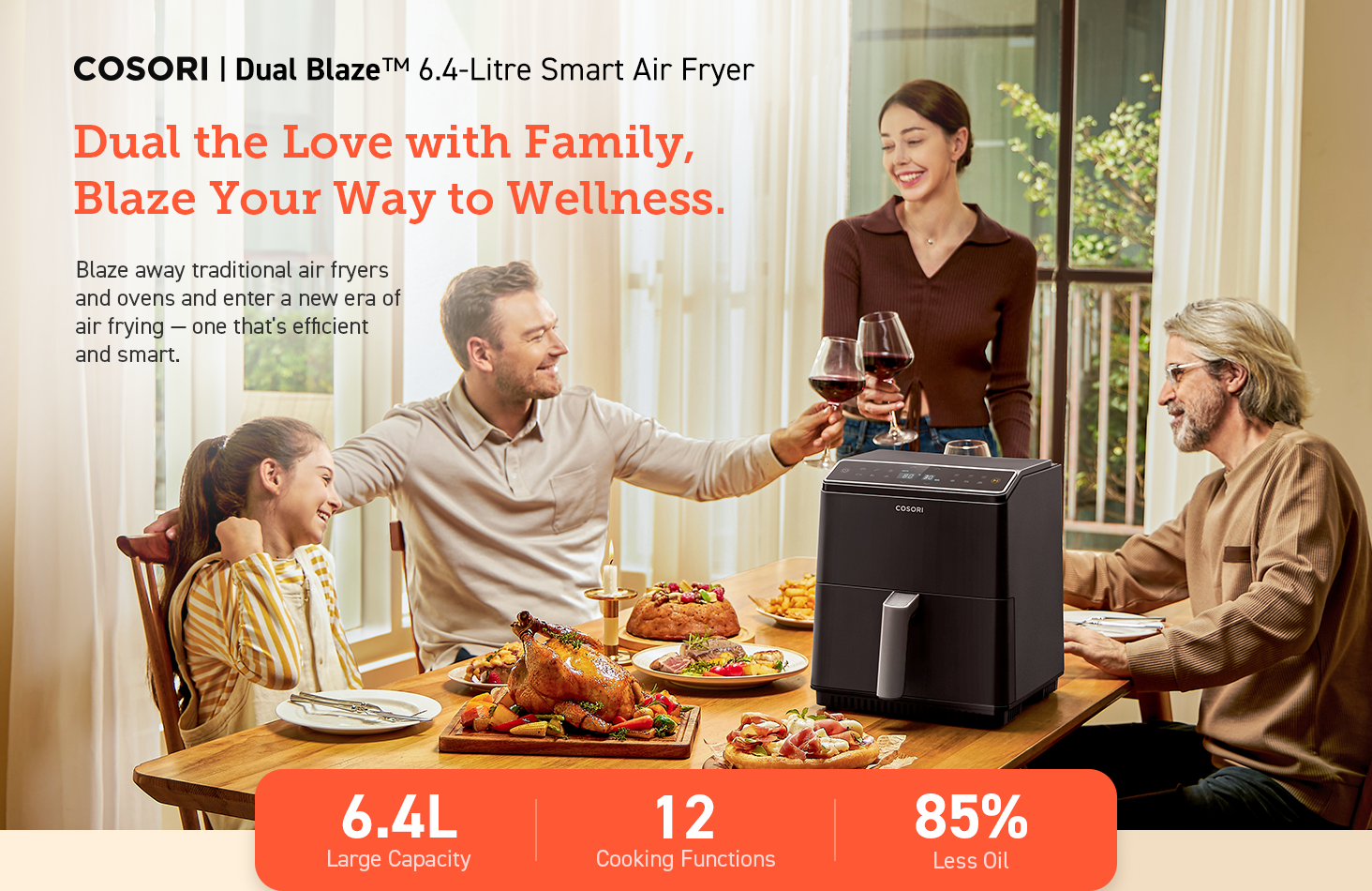 Cosori 6.4Ltr Dual Blaze Smart Air Fryer Dark Grey CAF-P681S
