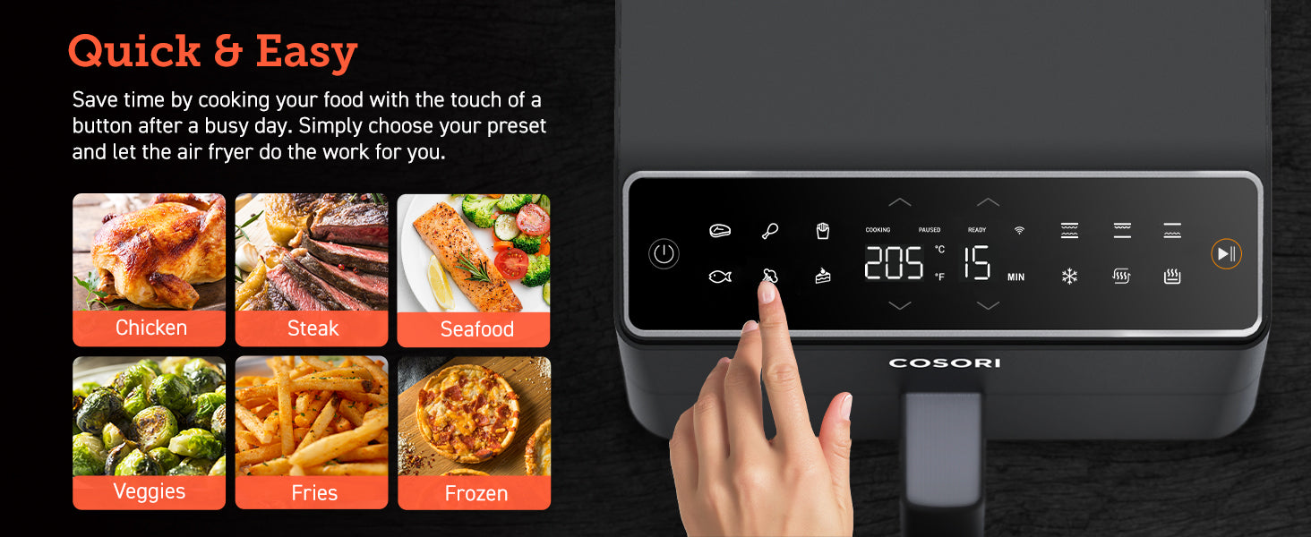 - 360 ThermoIQ Technology: Dual heating elements plus our patented automatic temperature control cook both sides of your food evenly without needing to shake or flip.