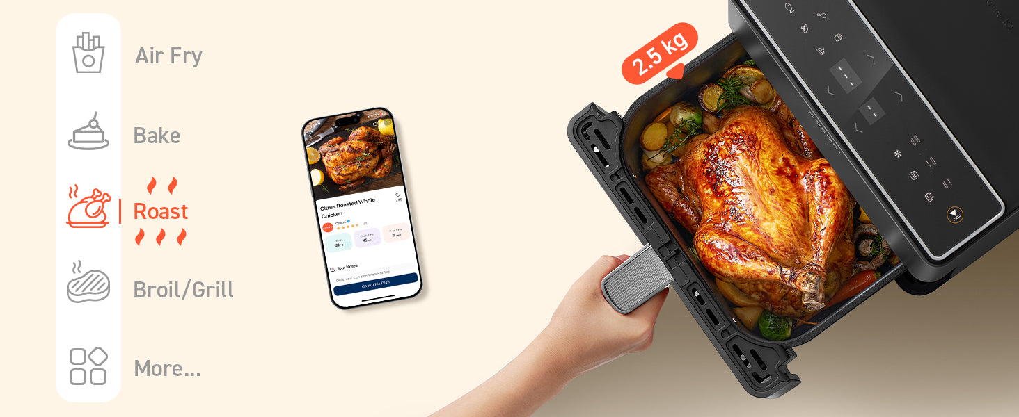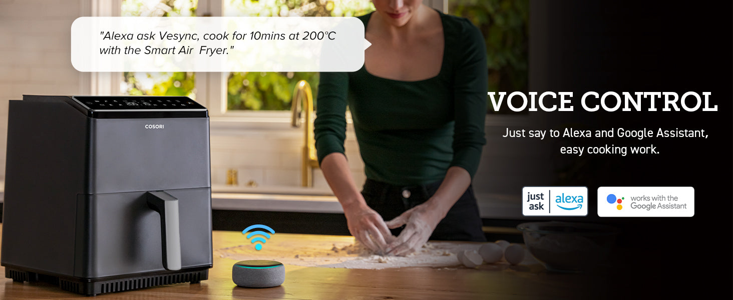 - Smart Control: Control your air fryer remotely, monitor cooking progress, and activate voice control with Amazon Alexa and Google Assistant through the free VeSync app*.