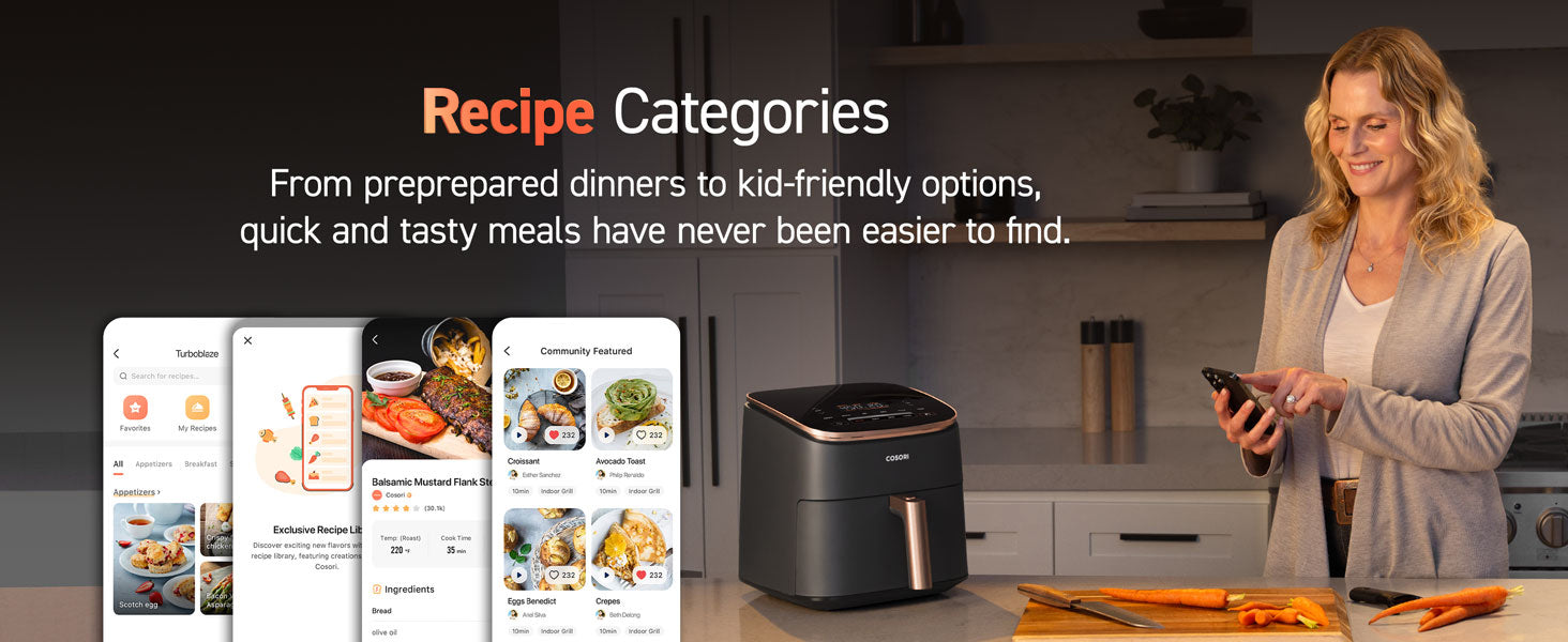 Welcome to the next generation of air frying. Cook meals up to 46% faster* with DC motor technology and free yourself of the time constraints that come with stovetop cooking. With 9 cooking functions and a variety of online chef-created recipes, you can create and taste new flavors every day.