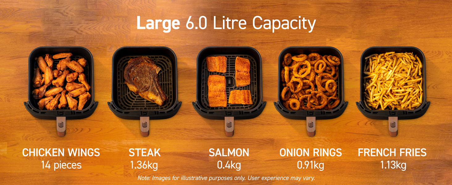 - 6-Litre Capacity: Cooks meals and sides for 3–5 people with the large, nonstick basket.