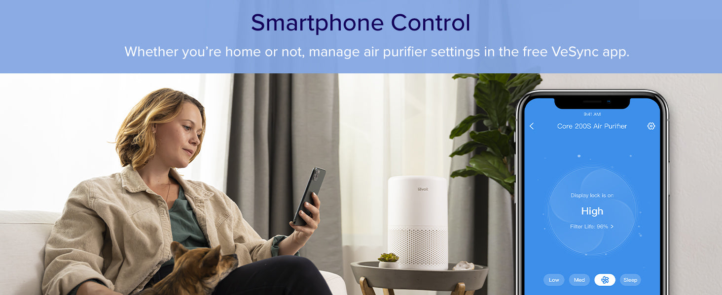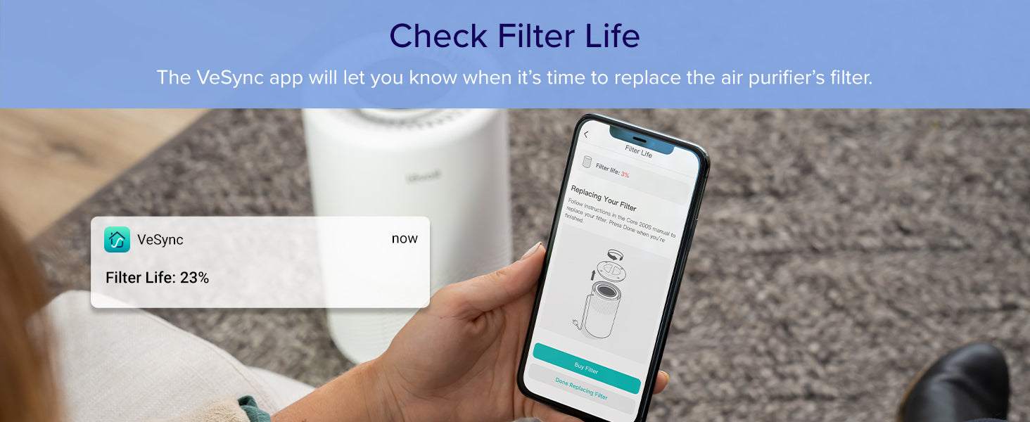 Access from Anywhere: Use the VeSync app to manage your air purifier’s activity from anywhere.