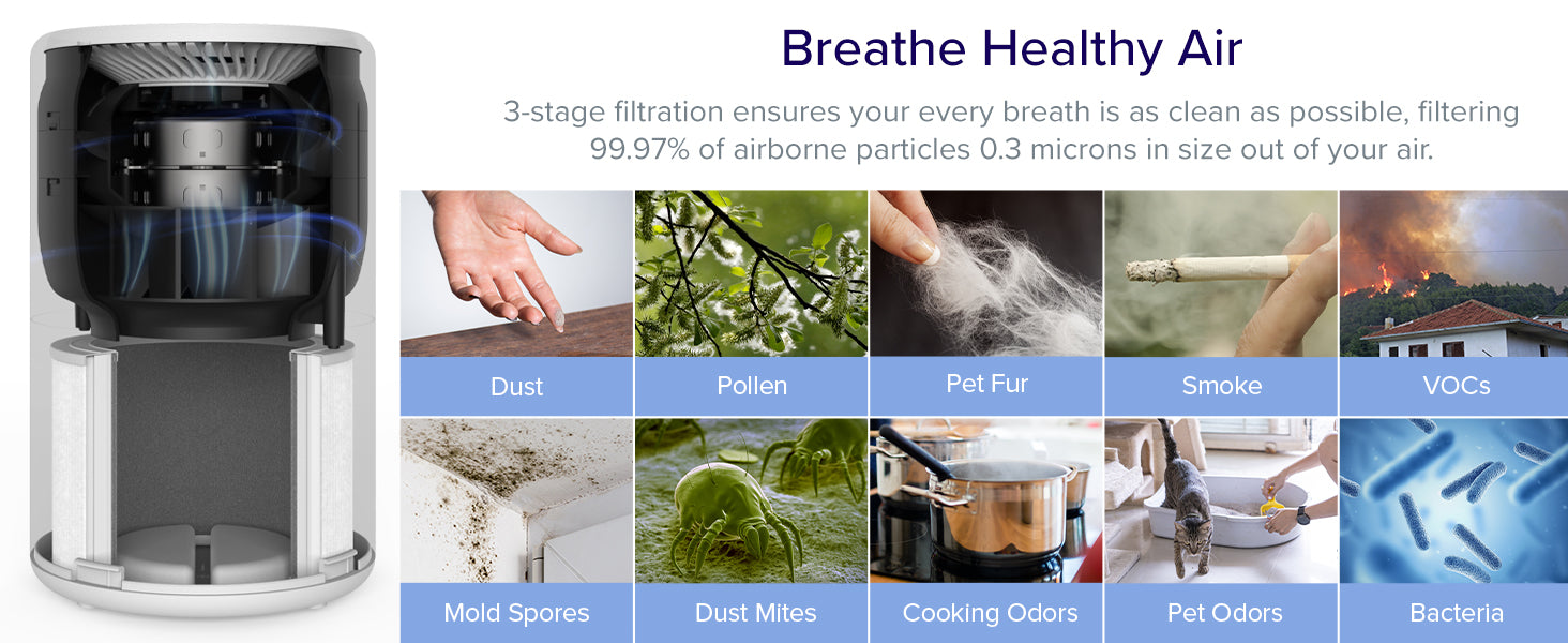 Voice Control: Control your air purifier from across the room with Amazon Alexa or Google Assistant.