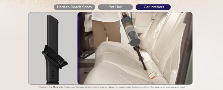 No cords. No tangled hair. No €500 price tag. The LVAC-200 provides easy top-to-bottom cleaning to tackle urgent messes fast with unique features like: