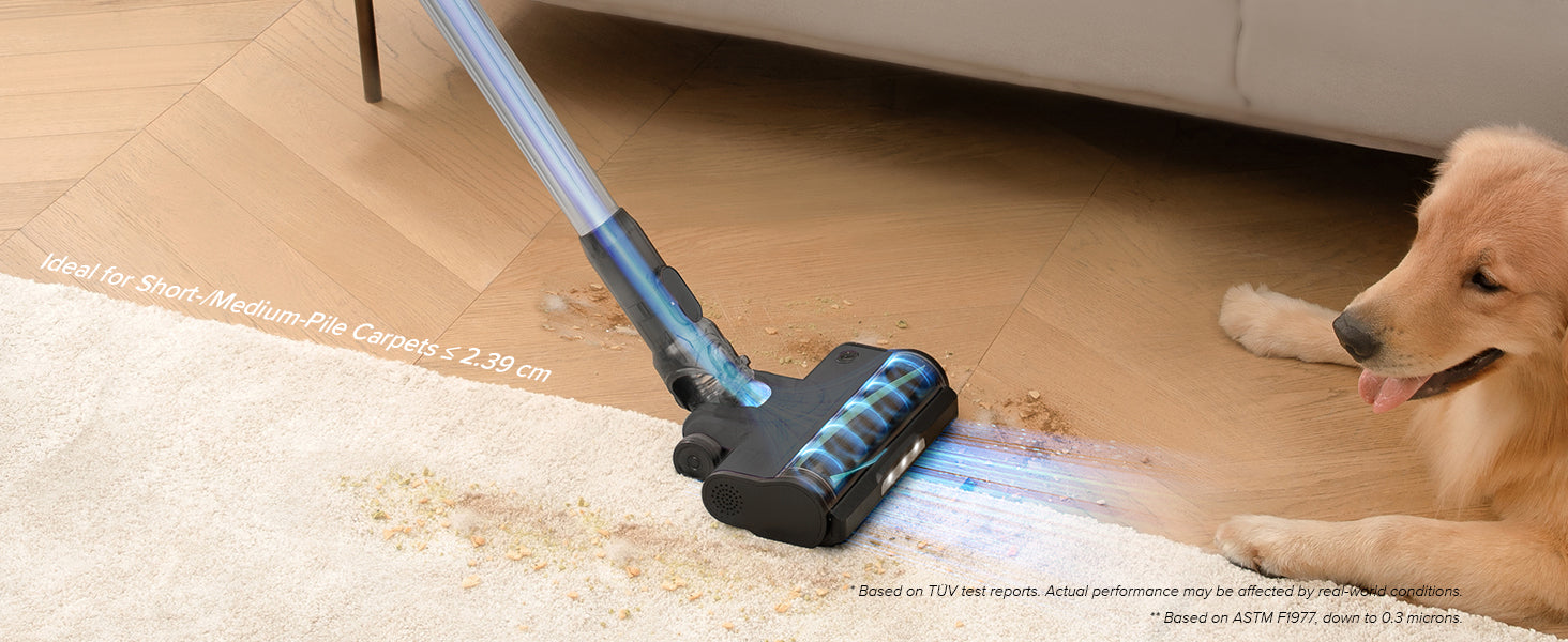 - Lightweight Stick Design: A cordless stick design allows the vacuum to be moved from room to room and up and down stairs with minimal effort.