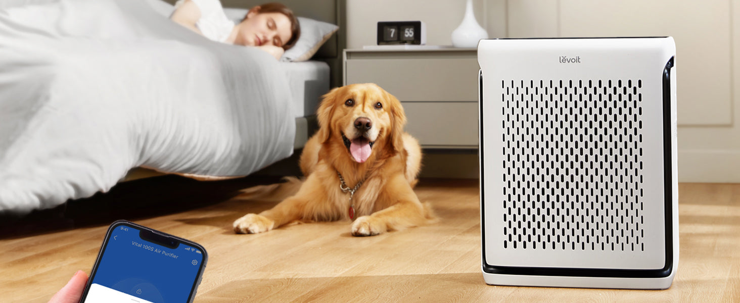 Renew your space with the Levoit Vital 100S Smart True HEPA Air Purifier. Featuring 3-stage filtration, smart control, and a wide U-shaped air inlet that’s especially effective at capturing airborne pet fur, this air purifier brings convenience and cleanliness together.