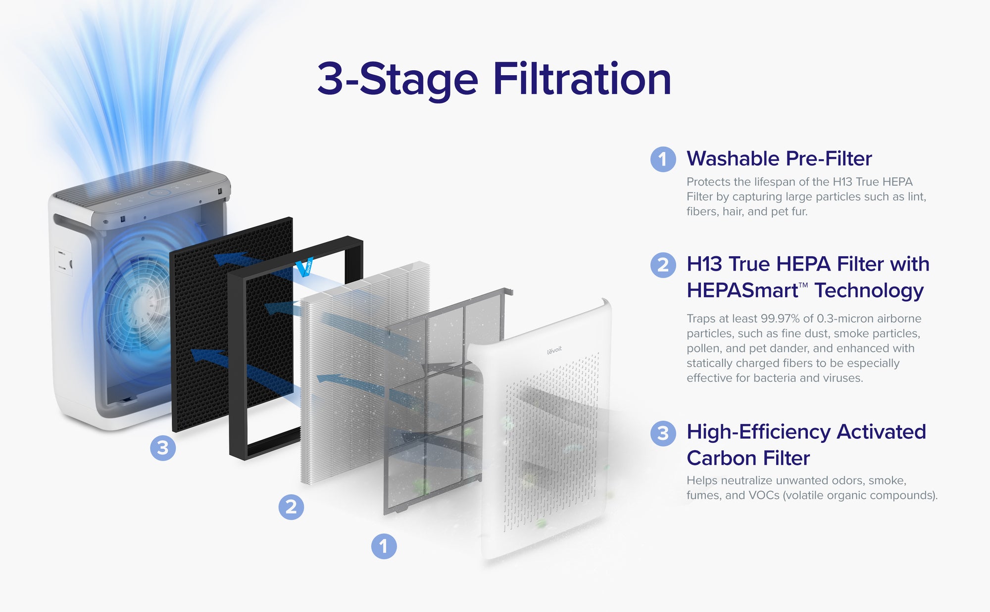 - UPGRADED HEPA SMART TECHNOLOGY: Our H13 True HEPA Filter is safer than medical surgical mask materials and can achieve a better purification effect than traditional general HEPA. It captures 99.97% of dust and allergens as small as 0.3 microns such as household dust, pet dander, mold spores, and plant pollen