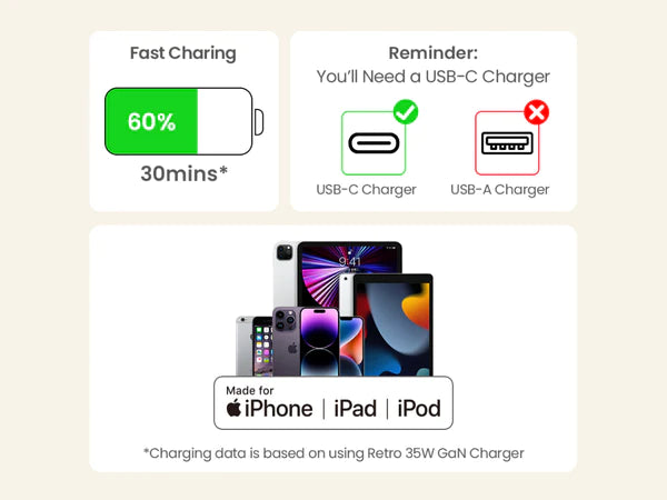 - Fast charging for Apple devices