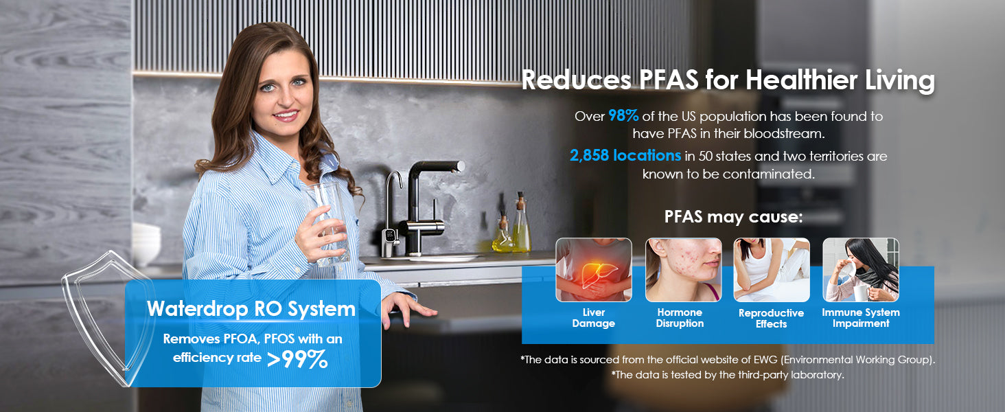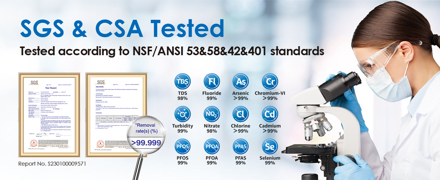 - Waterdrop reverse osmosis system is certified against NSF/ANSI 58 for TDS reduction and NSF/ANSI 372 certified for lead-free material.