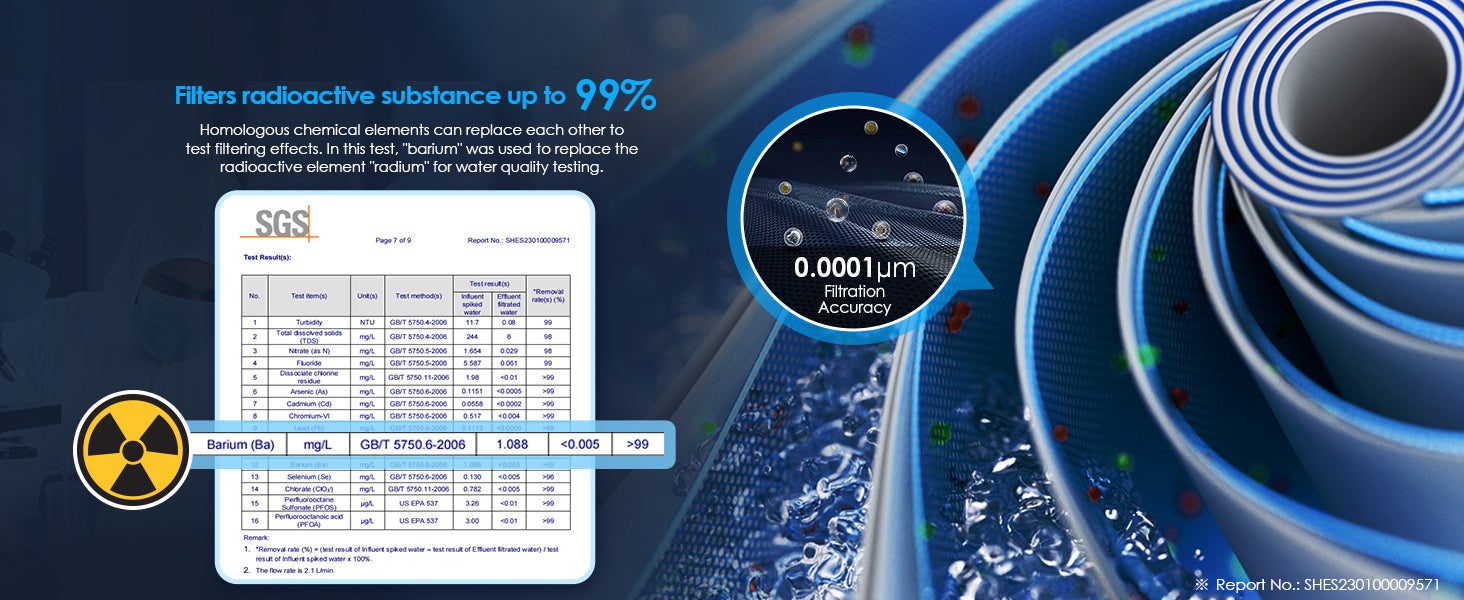 - Through 8-stage deep filtration, it can reduce chlorine, taste and odor, chloramine, scale, turbidity, cysts, and many heavy metals, such as hexavalent chromium while improving the taste of water.